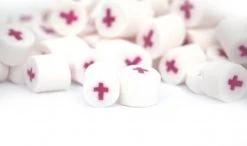 Rock Candy Pillows – Large – Pin Striped – Pink With A Strawberry And Cream Flavour (500g Bag)