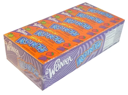 Wonka Runts – candy pieces in fruity flavours. (24 x 51g boxes in a display unit)